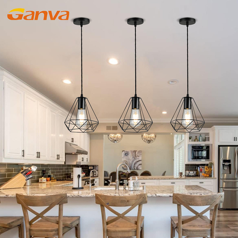 GANVA Simple estilo americano interior comedor E27 Base colgante hierro Metal candelabro lámpara colgante
